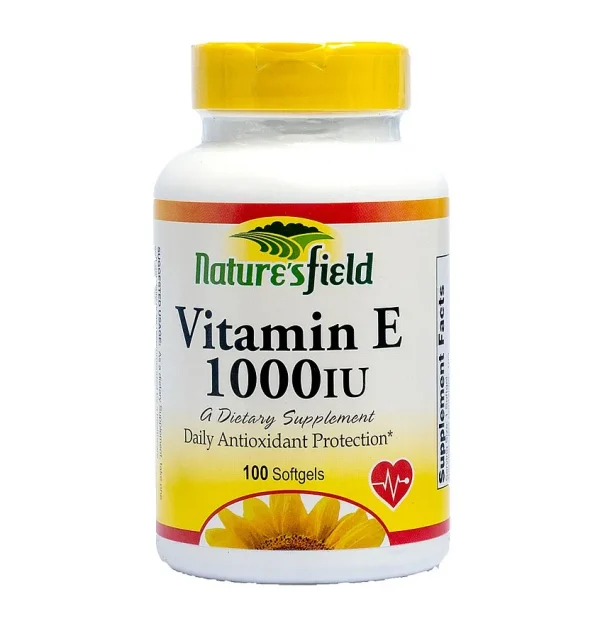 Nature’s Field Vitamin E is a powerful antioxidant that supports the immune system, nervous system, circulatory system and needed for healthy skin and hair. It is found in many foods including vegetable oils, cereals, meat, poultry, eggs, fruits, vegetables, and wheat germ oil. Vitamin E is an important vitamin required for the proper function of many organs in your body. As an antioxidant, it helps to slow down processes that damage your cells. Nature’s Field Vitamin E with a pack strength of 1000iu is an excellent source of vitamin E.