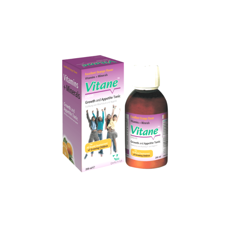 Vitane Syrup provides the benefit of Vitamins + Minerals which helps in growth and development of children.